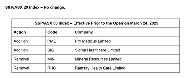 Changes will take place on March 24 2025. Check on the complete list at Market Index.